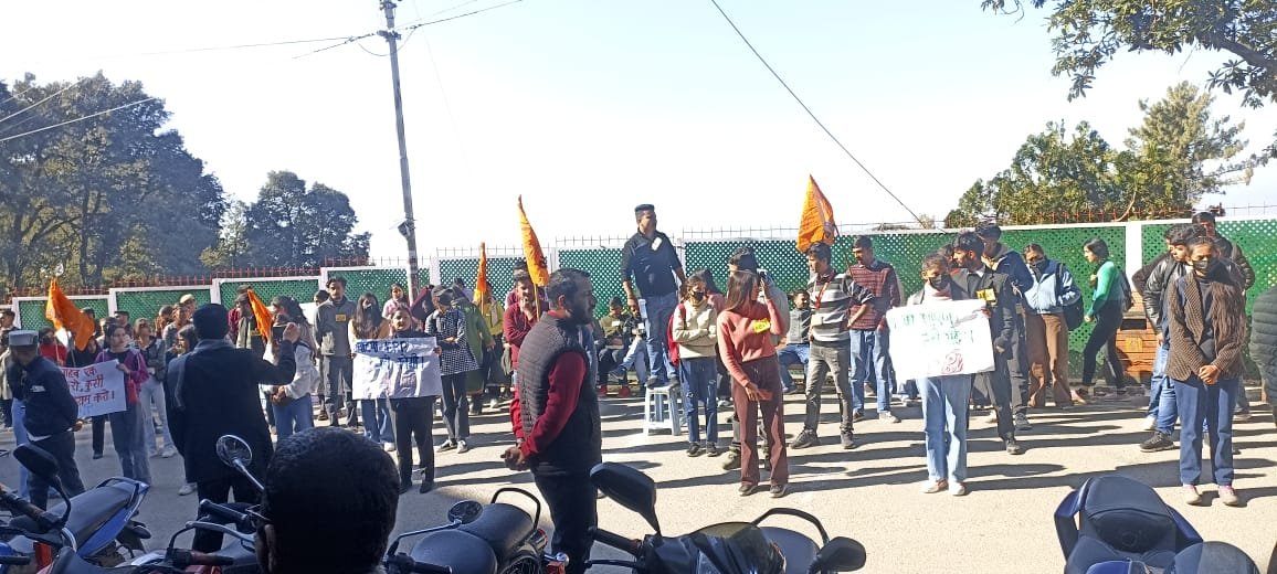 शिमला : अखिल भारतीय विद्यार्थी परिषद हिमाचल प्रदेश विश्वविद्यालय इकाई द्वारा आज विवि के ऐतिहासिक पिंक पैटल पर यूजी के परीक्षा परिणामों में आ रही अनियमितताओं को लेकर धरना प्रदर्शन किया गया | पिंक पैटल पर छात्रों को सम्बोधित करते हुए इकाई उपाध्यक्ष आशीष ने कहा कि यूजी के प्रथम वर्ष के परीक्षा परिणामों को लेकर विद्यार्थियों में अत्यंत रोष है और विवि में लगातार हो रहे धरने इसी बात का परिणाम है | उन्होंने कहा कि विश्वविद्यालय प्रशासन ने जब से ऑनलाइन प्रणाली विश्वविद्यालयमें लागू किया तब से विद्यार्थियों के परीक्षा परिणामों में अनियमितता सामने आ रही है | उन्होंने कहा कि हाल ही में यूजी के प्रथम वर्ष का जो परीक्षा परिणाम आया है उसमें अगर देखा जाए तो हिमाचल प्रदेश में लगभग 80 प्रतिशत से अधिक छात्र फेल कर दिए गए हैं | उन्होंने कहा कि विवि प्रशासन ने ऐसे समय पर परीक्षा परिणाम घोषित करा है जिस से कि छात्रों का भविष्य अधर में लटक गया है | छात्रों को 4 से 5 पेपरों में 1-1 नंबरों से फेल कर दिया गया है | उन्होंने कहा कि हिमाचल प्रदेश विश्वविद्यालय के यूजी प्रथम वर्ष के खराब है नतीजों पर हुए बबाल के बाद बेशक कमेटी ने इसके कारणों का पता लगाने की जाँच शुरू कर दी है | मगर खराब नतीजो के लिए व्यवस्थागत खामियाँ, आवश्यक संसाधनों की कमी कहीं ना कहीं जिम्मेदार है | परीक्षा परिणामों को लेकर पूरे प्रदेश भर के छात्रों में विवि प्रशासन के प्रति भयंकर रोष है |