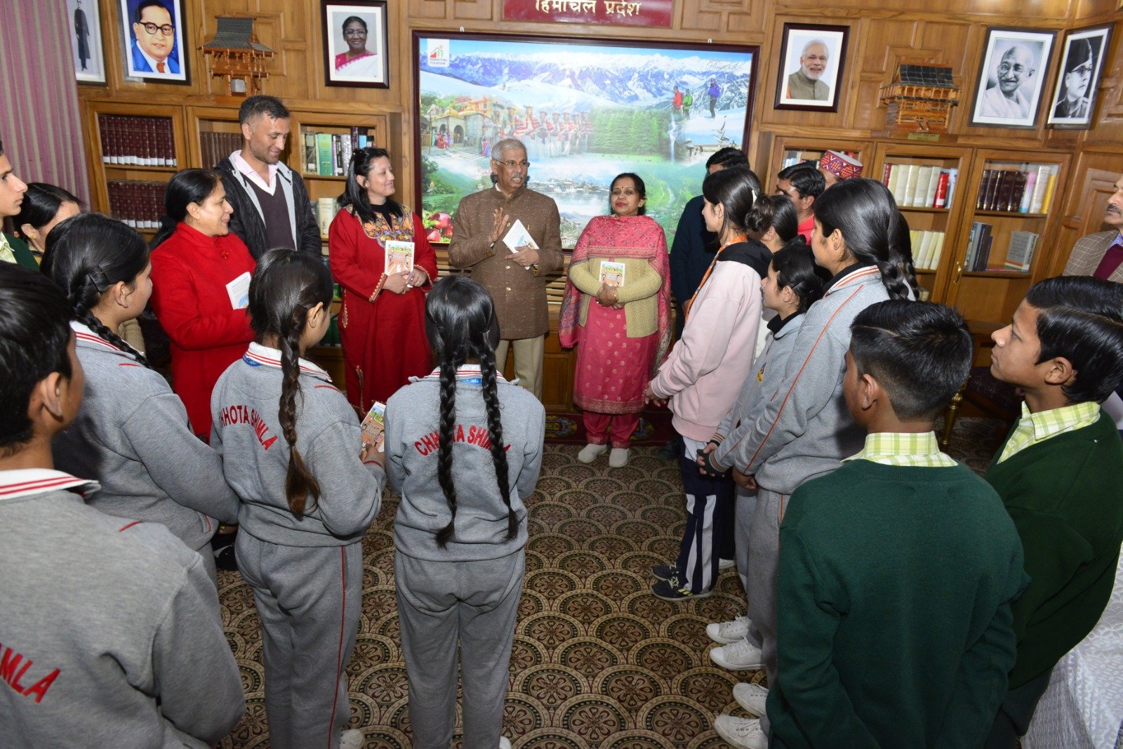 शिमला: राज्यपाल श्री राजेंद्र विश्वनाथ आर्लेकर ने आज राजभवन में शिमला के विभिन्न स्कूलों के विद्यार्थियों, शिक्षकों व अभिभावकों की उपस्थिति में प्रधानमंत्री श्री नरेंद्र मोदी की प्रेरक पुस्तक ‘एग्जाम वॉरियर्स’ का विमोचन किया। इस अवसर पर, छात्रों ने प्रधानमंत्री के नई दिल्ली से प्रसारित ‘परीक्षा पे चर्चा’ के छठे संस्करण को सुनकर प्रेरणा ली। इस साल 38 लाख से अधिक छात्रों ने इस कार्यक्रम में भाग लेने के लिए रजिस्ट्रेशन किया, जो पिछले साल से दोगुने से भी अधिक हैं।
