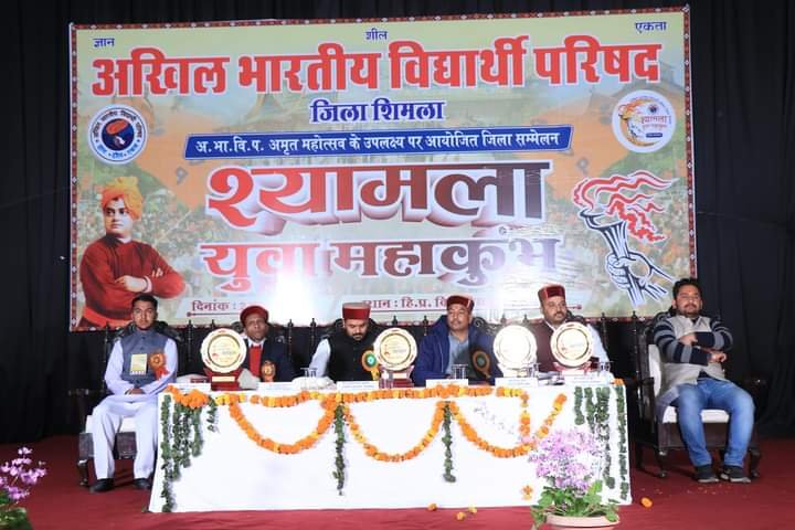 शिमला; आज अखिल भारतीय विद्यार्थी परिषद[ABVP] जिला शिमला के जिला सम्मेलन का आयोजन हुआ, जिसमे संगठनात्मक जिला शहरी शिमला के विभिन्न शिक्षण संस्थानों से तरुनाई छात्र शक्ति ने भाग लिया, विधार्थी परिषद विगत 75 वर्षों की अपनी स्वर्णिम यात्रा में एबीवीपी ने देश के युवाओं को संगठित करते हुए समाज के अन्य क्षेत्रों के कार्य करने वाला नेतृत्व प्रदान किया है, विधार्थी परिषद अपने 75वें वर्ष में प्रवेश कर चुकी है जिसके उपलक्ष्य पर देश भर में परिषद द्वारा अमृत महोत्सव मनाया जा रहा है। विधार्थी परिषद 1949 से न सिर्फ छात्रहित बल्कि समाज हित में भी काम करती आ रही है। इस सम्मेलन में विभिन्न स्कूल , महाविद्यालय,विश्वविद्यालय , तकनीकी महाविद्यालयों,मेडिकल कॉलेज और सभी राष्ट्रीय स्तर के शिक्षण संस्थानों के 1050 विधार्थी, प्रशिक्षु भाग लिया। इस कार्यक्रम में मुख्य अतिथि अखिल भारतीय विद्यार्थी परिषद राष्ट्रीय महा – मंत्री श्री याज्ञवल्क्य शुक्ल