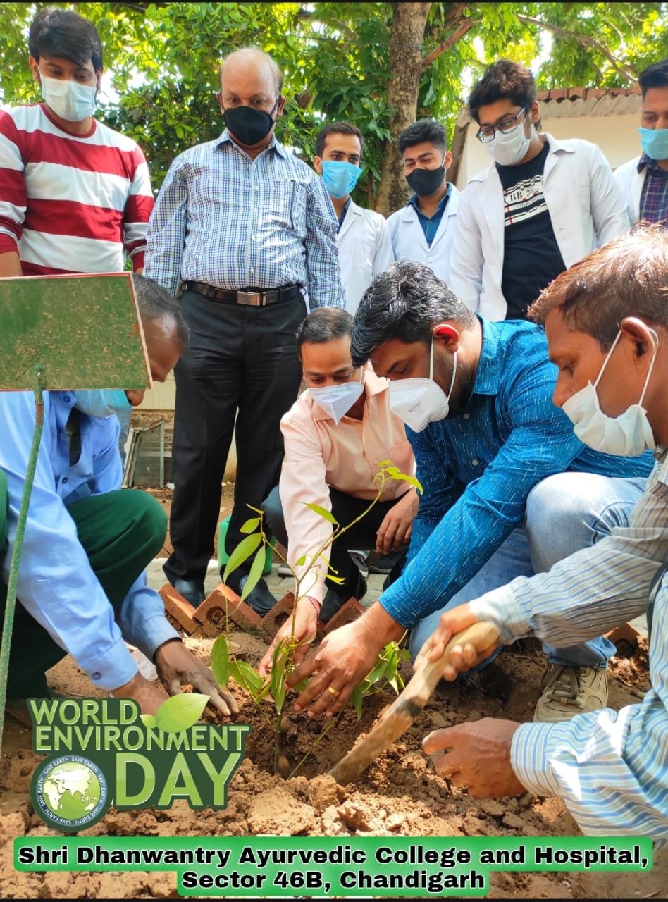 चण्डीगढ़। श्री धनवन्तरी आयुर्वेदिक कॉलेज एंड हॉस्पिटल ने स्वस्थ समाज एंव स्वस्थ देश की सोच को आगे ले जाते हुए एक बार फिर पर्यावरण सुधार की ओर क़दम बढ़ाया । आज 5 जून को विश्व पर्यावरण दिवस के मौके पर श्री धनवन्तरी आयुर्वेदिक कॉलेज एंड हॉस्पिटल में डीन ऑफ एकैडमिक्स प्रो.(डॉ) सुमित श्रीवास्तव ने पौधारोपंण किया एंव स्वस्थवृत एंव योग के विभागाध्यक्ष प्रो.(डॉ) डी.के.चड्ढा ने योग कैम्प में आए हुए व्यक्तियों को स्वच्छ पर्यावरण से मिलने वाले स्वास्थ्य संबधित फायदे बताते हुए उन्हें भी इस दिन पाँच पाँच पौधे लगाने के लिए प्रेरित किया।इस दौरान बाल रोग विभाग की असिस्टेंट प्रोफ़्फ़ेस्सोर एंव योग कैम्प कोऑर्डिनेटर डॉ शिक्षा राणा भी उपस्थित रहीं।