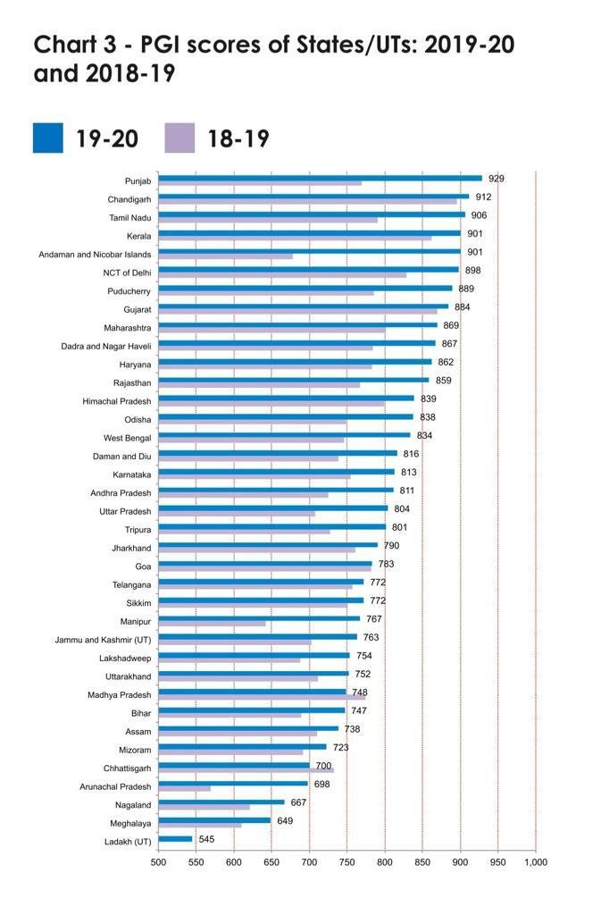 केंद्र सरकार के स्कूल शिक्षा और साक्षरता विभाग की ओर से स्कूल शिक्षा के क्षेत्र में परिवर्तनकारी बदलाव को देखने के लिए निष्पादन ग्रेडिंग सूचकांक (परफार्मेंस ग्रेडिंग इंडेक्स) तैयार किया गया है। वर्ष 2019-20 के लिए राज्य, संघ राज्य के क्षेत्र स्तर पर 70 मापदंडों के ऑनलाइन पोर्टलों का उपयोग करते हुए रिपोर्ट को तैयार किया गया