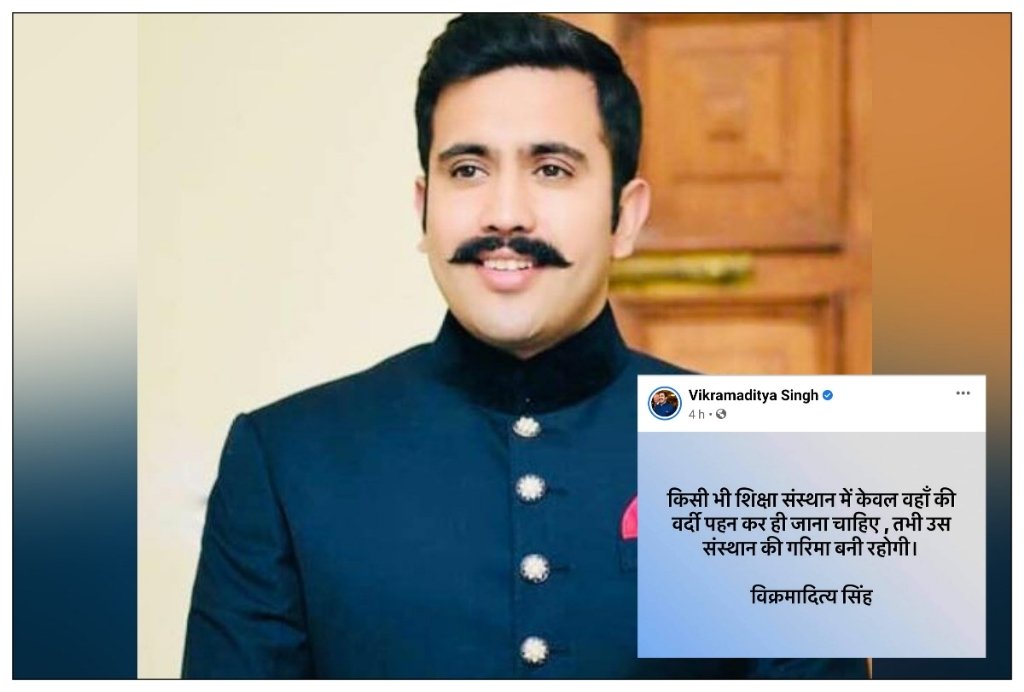 शिमला : शिमला ग्रामीण से विधायक विक्रमादित्य सिंह हर मुद्दे पर अपनी बेबाक राय रखते रहते हैं। फिर बात चाहे पंजाब में प्रधानमंत्री नरेंद्र मोदी की सुरक्षा में चूक की हो या फिर देश भर में चल रहे हिजाब विवाद की। भले इसके चलते उन्हें अपनी ही पार्टी से विरोध के कटाक्ष मिले। इस बार विक्रमादित्य सिंह ने कर्नाटक में चल रहे हिजाब विवाद को लेकर सोशल मीडिया पर अपनी राय रखी है। उन्होंने लिखा कि “किसी भी शिक्षण संस्थान में वहां की वर्दी पहन कर ही जाना चाहिए, तभी उसकी गरिमा बनी रहती है।”