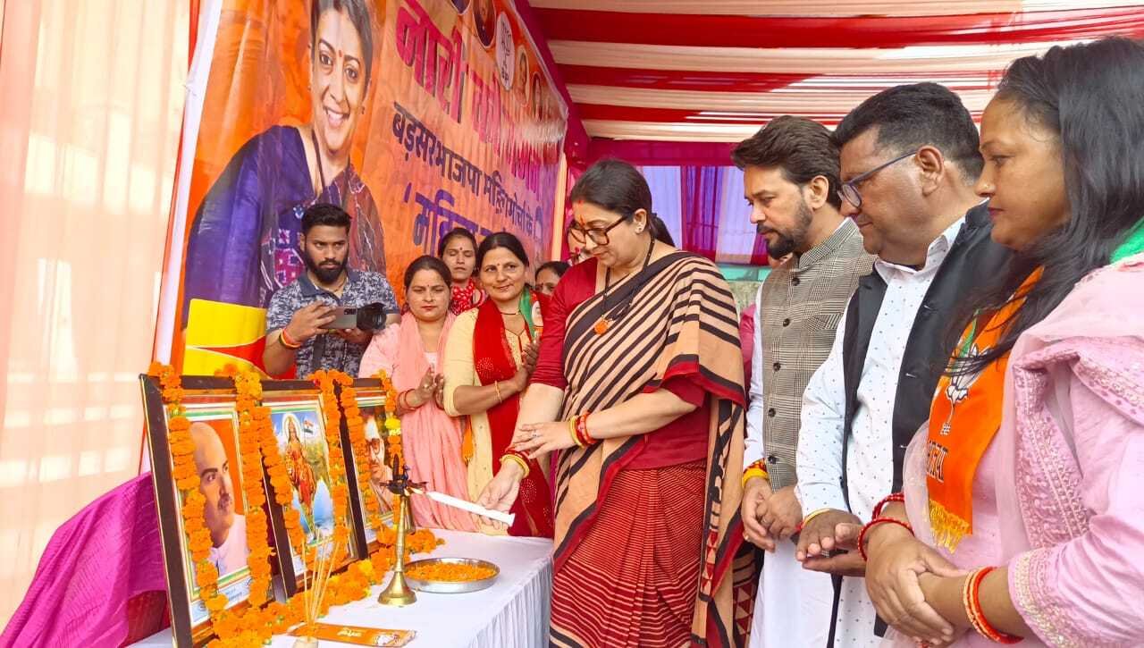 केंद्रीय मंत्री ने कहा कि एक महिला कार्यकर्ता के नाते हमें इस बात का गौरव है कि भारतीय जनता पार्टी वह परिवार है जहां पर भाई और बहन कदम से कदम मिलाकर प्रदेश और राष्ट्र को विकसित समृद्ध स्वस्थ और सामर्थ्य की दृष्टि से परिपूर्ण करते हुए विकास की इस अनन्य यात्रा पर निकल चुके हैं.मंच पर बोलते हुए स्मृति ईरानी ने केंद्रीय मंत्री अनुराग ठाकुर की तरफ इशारा करते हुए बलदेव शर्मा को कहा कि दिल्ली आपकी बगल में बैठी है.